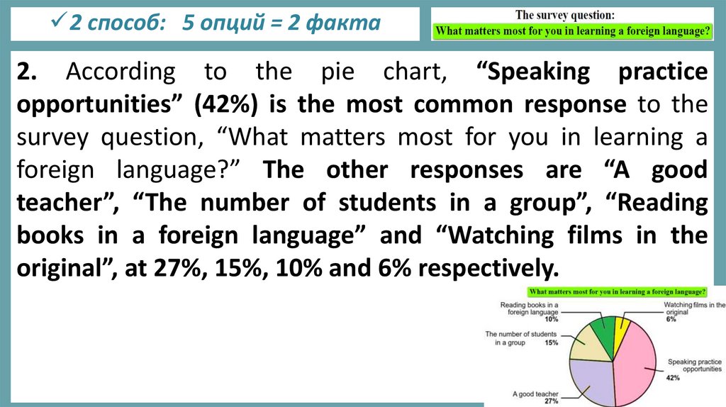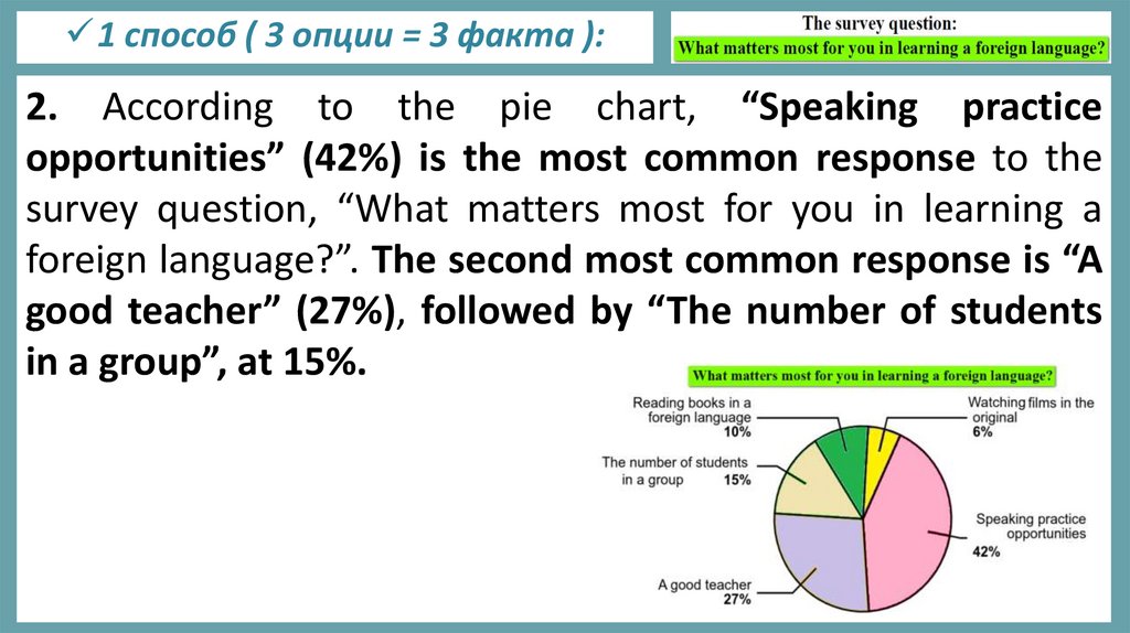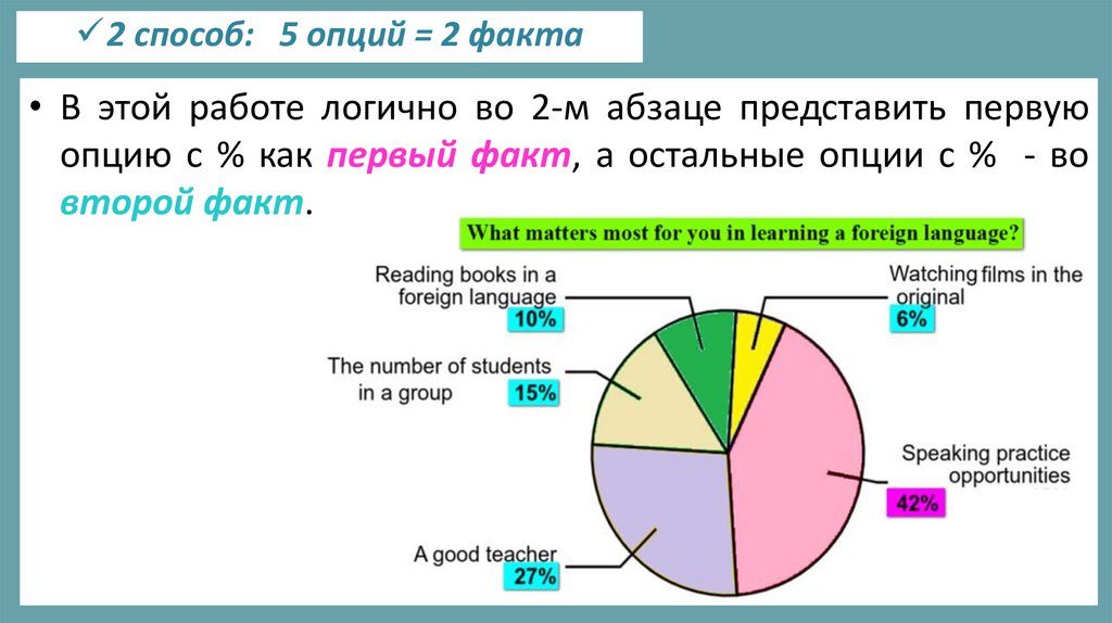2 абзац, два способа привести 2-3 факта:1 способ -> выбрать 2-3 опции с 2-3 числовыми