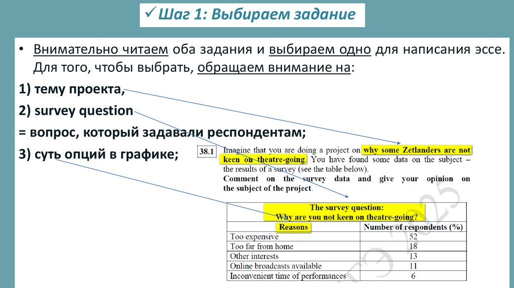 Шаг 1: Выбираем задание• Внимательно читаем оба задания и выбираем одно для написания эссе.