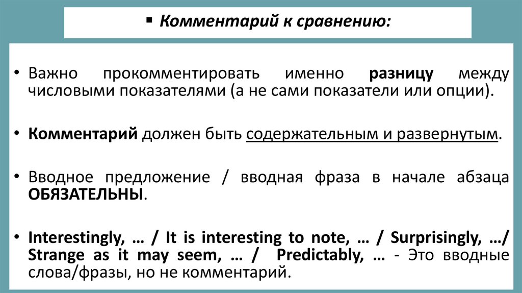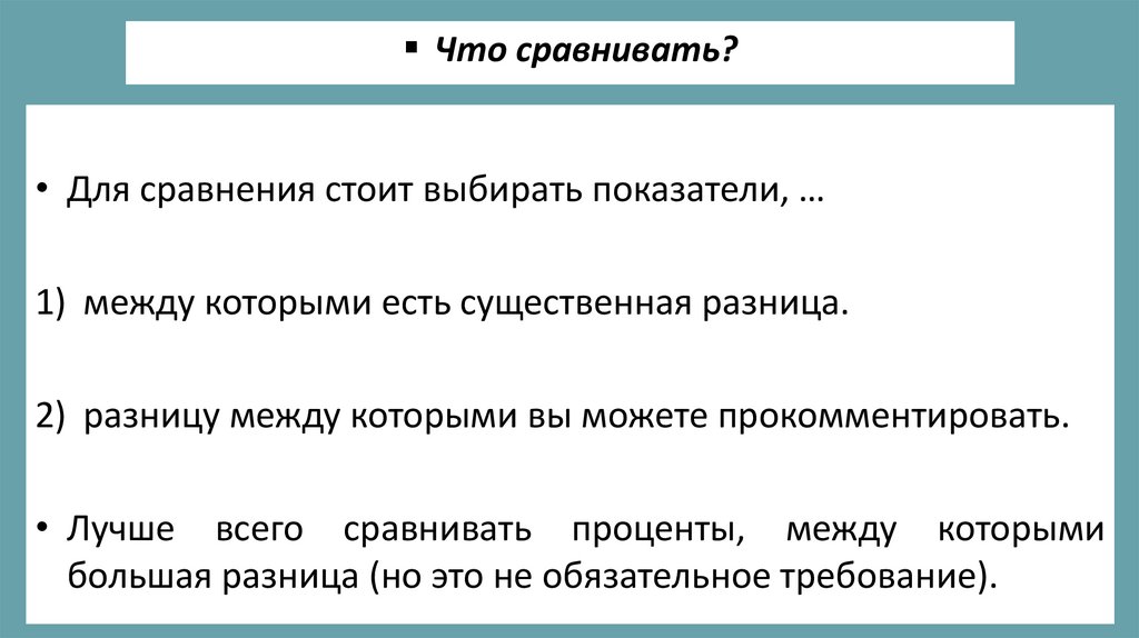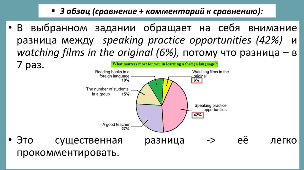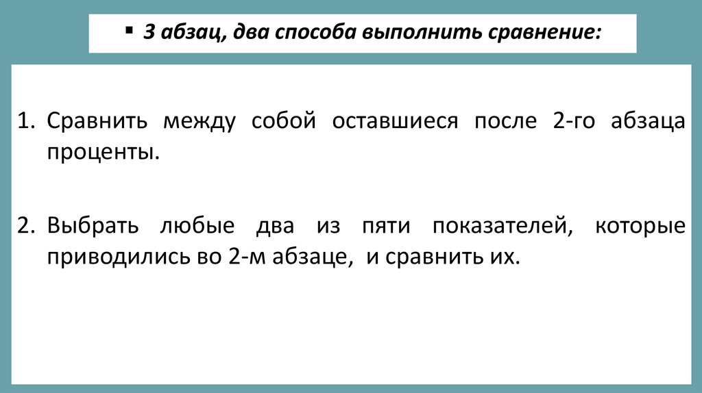 3 абзац: сравнение = …% vs …%, комментарий = … … …