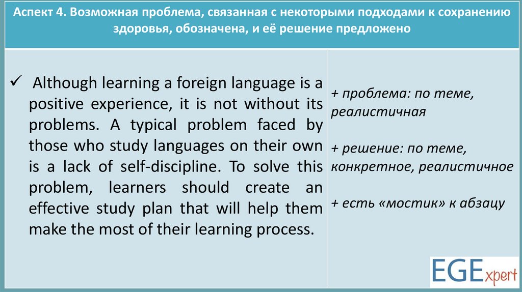 Аспект 4. Возможная проблема, связанная с некоторыми подходами к сохранениюздоровья, обозначена, и её решение предложено