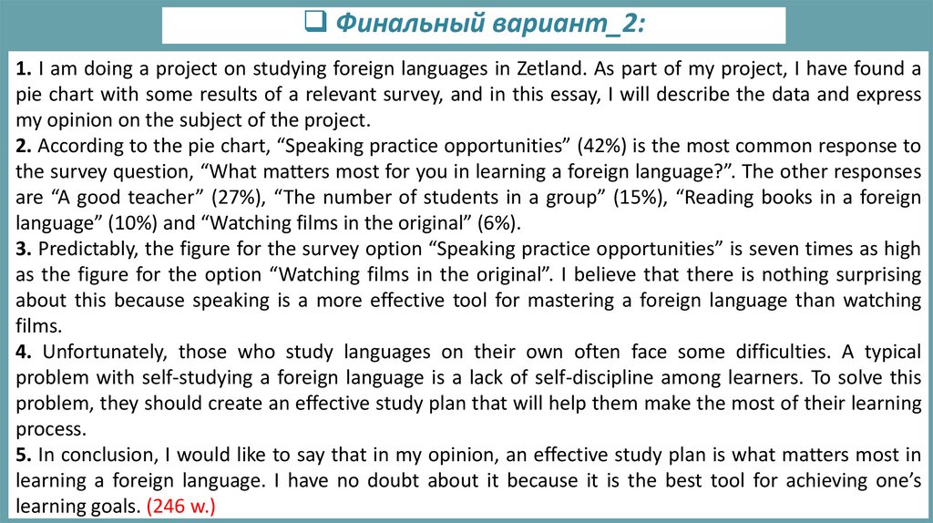 one’s learning goals when it comes to studying a foreign language. (269 w.)