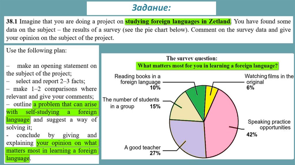 Задание:38.1 Imagine that you are doing a project on studying foreign languages in Zetland. You have found some
