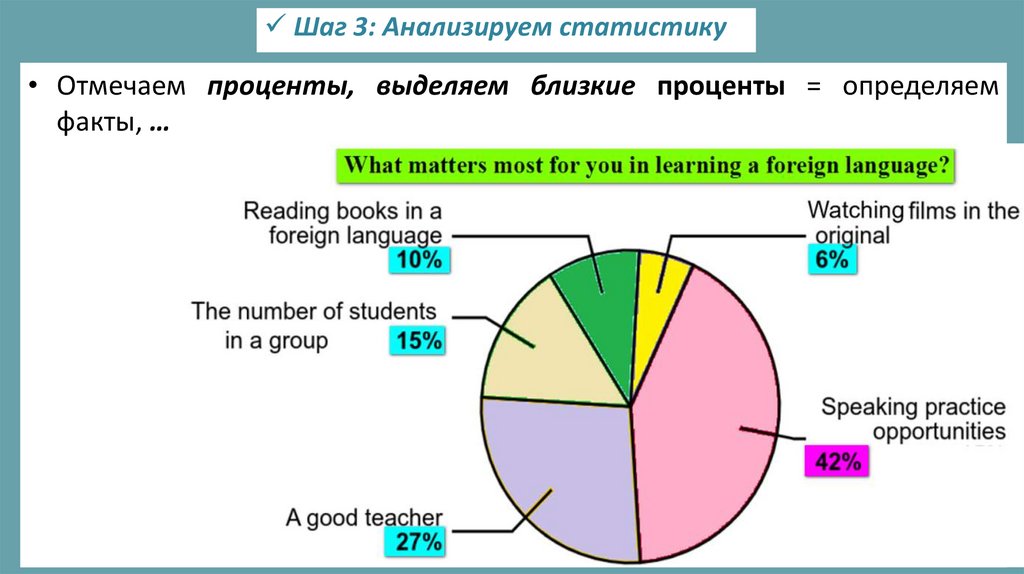 Шаг 3: Анализируем статистику• Отмечаем проценты, выделяем близкие проценты = определяем