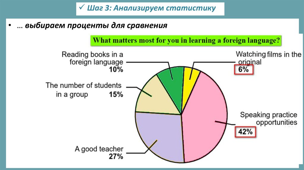 Шаг 3: Анализируем статистику• … выбираем проценты для сравнения