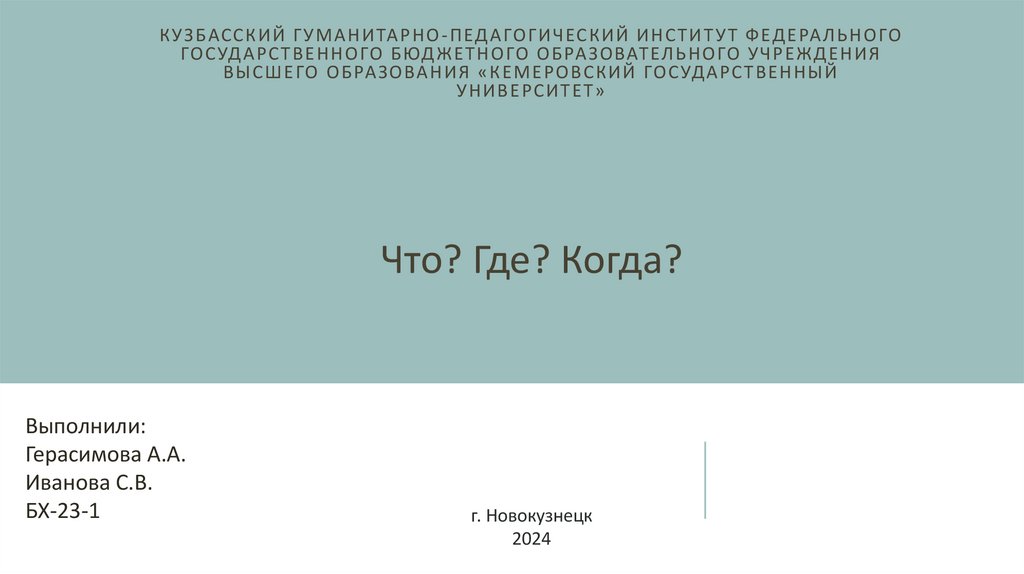 К У З Б АС С К И Й Г У М А Н И ТА Р Н О - П Е Д А ГО Г И Ч ЕС К И Й И Н С Т И Т У Т Ф Е Д Е РА Л Ь Н О ГОГО С УД А Р С Т В Е Н Н О ГО Б ЮД Ж Е Т Н О ГО О Б РА З О В АТ ЕЛ Ь Н О ГО УЧ Р Е Ж Д Е Н И Я