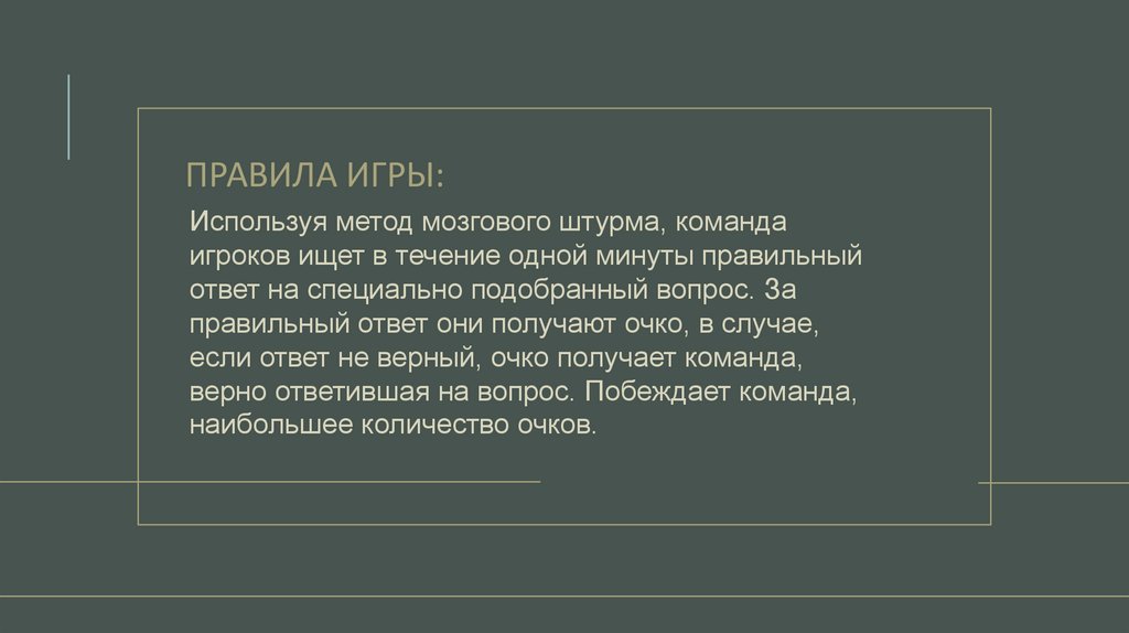 ПРАВИЛА ИГРЫ:Используя метод мозгового штурма, команда