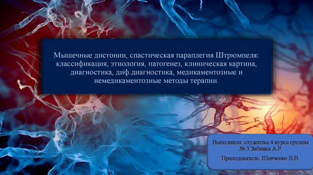 1. Мышечные дистонии, спастическая параплегия Штрюмпеля: классификация, этиология, патогенез, клиническая картина, диагностика,