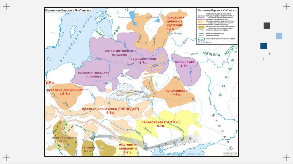 1. Пространство пражско-корчакской культуры, сложившееся в итоге длительныхмиграций, огромно: от Верхней Эльбы и Среднего Дуная на западе до