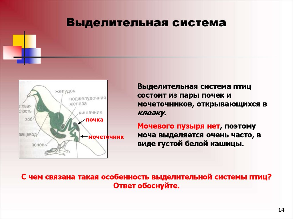 С чем связана такая особенность выделительной системы птиц?
