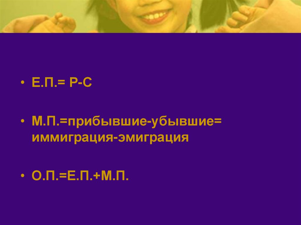 • Е.П.= Р-С• М.П.=прибывшие-убывшие=