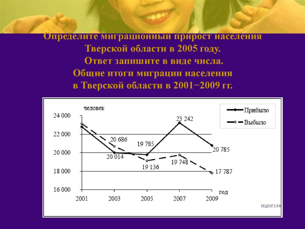 Определите миграционный прирост населенияТверской области в 2005 году.