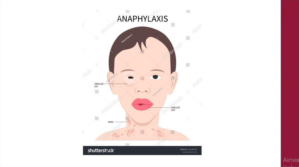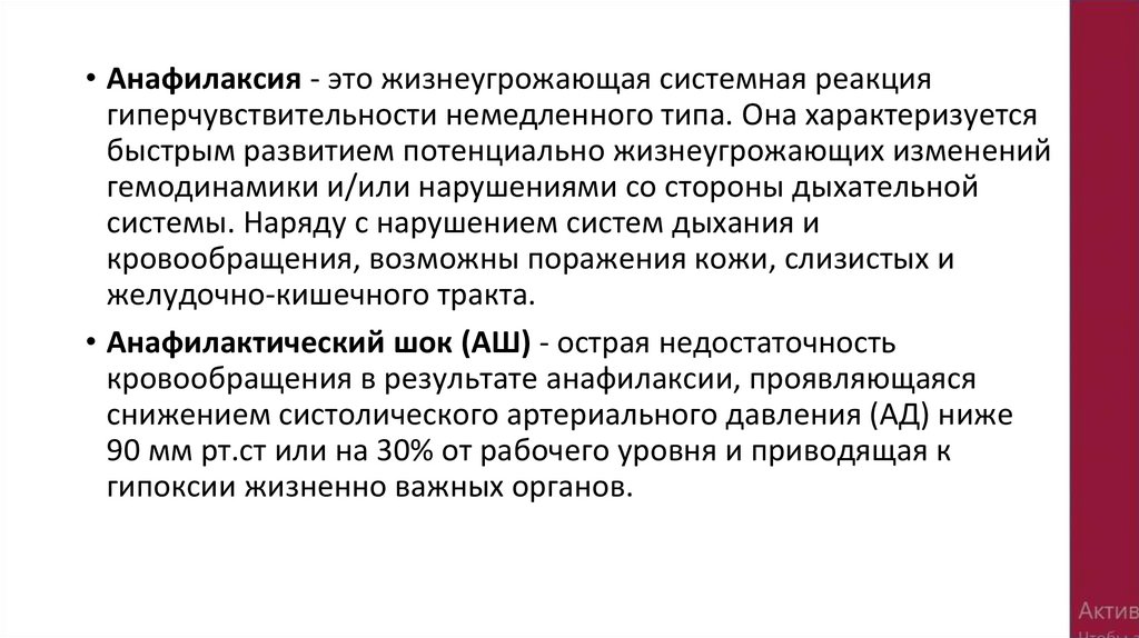 • Анафилаксия - это жизнеугрожающая системная реакциягиперчувствительности немедленного типа. Она характеризуется