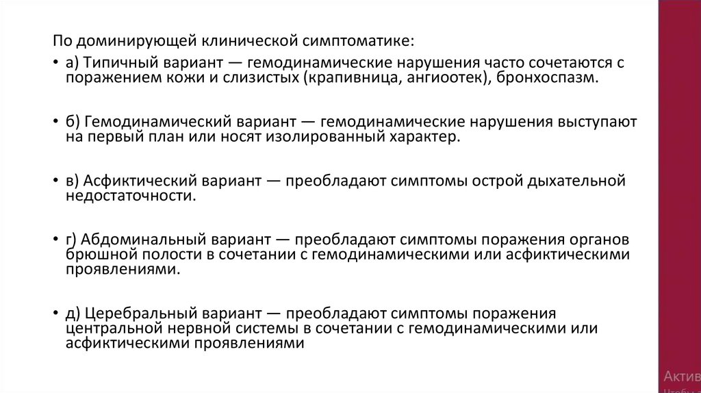 По доминирующей клинической симптоматике:• а) Типичный вариант — гемодинамические нарушения часто сочетаются с