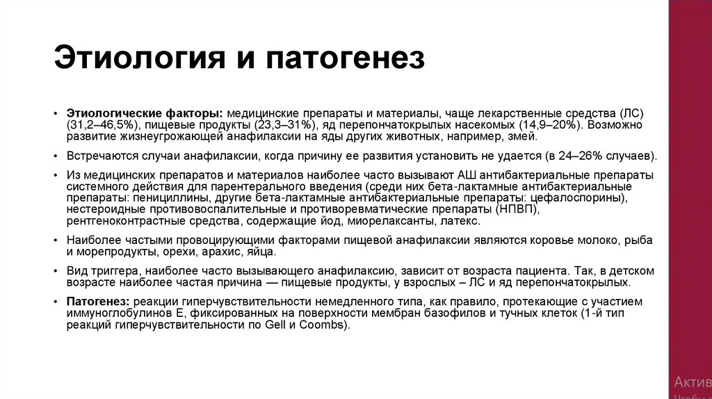 (31,2–46,5%), пищевые продукты (23,3–31%), яд перепончатокрылых насекомых (14,9–20%). Возможно