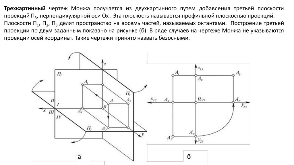 Методы проекций. Эпюр Монжа. Чертеж точки,прямой и плоскости на эпюре.