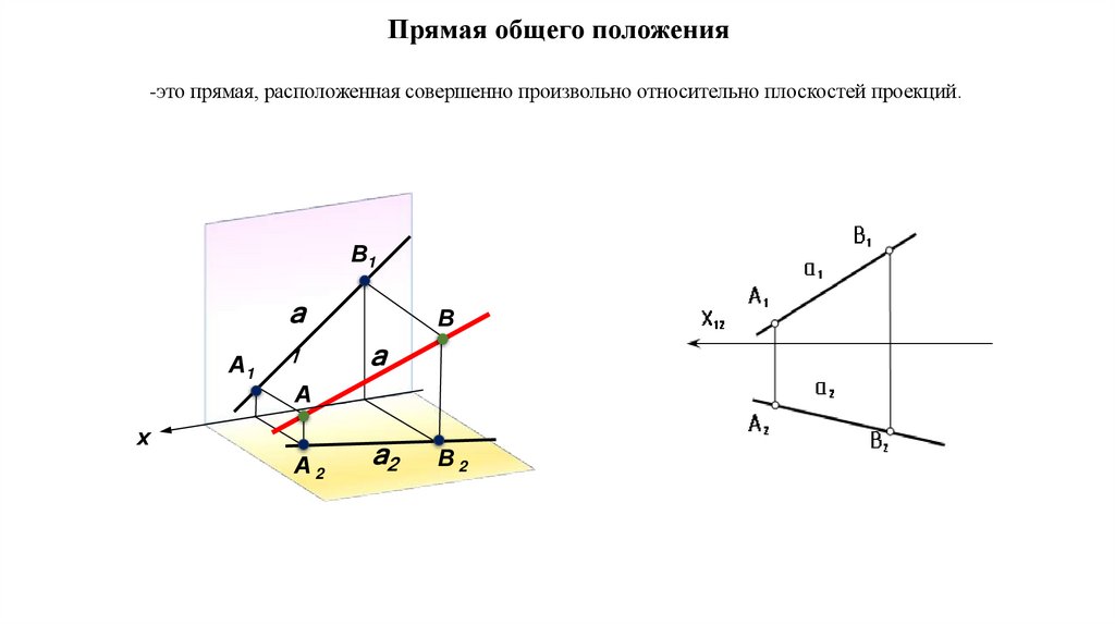 Прямая общего положения-это прямая, расположенная совершенно произвольно относительно плоскостей проекций.