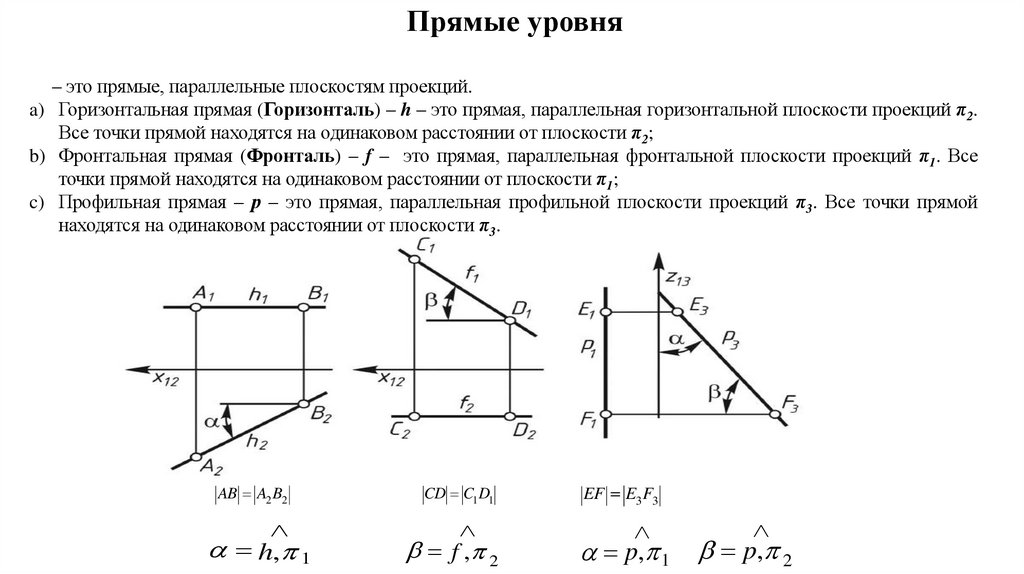 Прямые уровня– это прямые, параллельные плоскостям проекций.