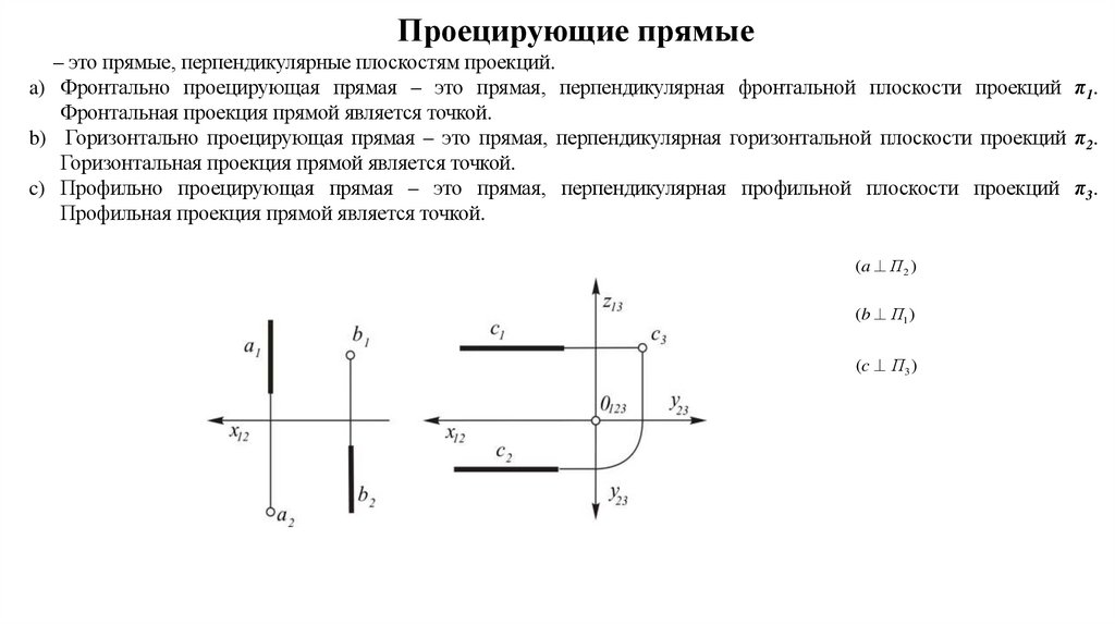 Проецирующие прямые– это прямые, перпендикулярные плоскостям проекций.