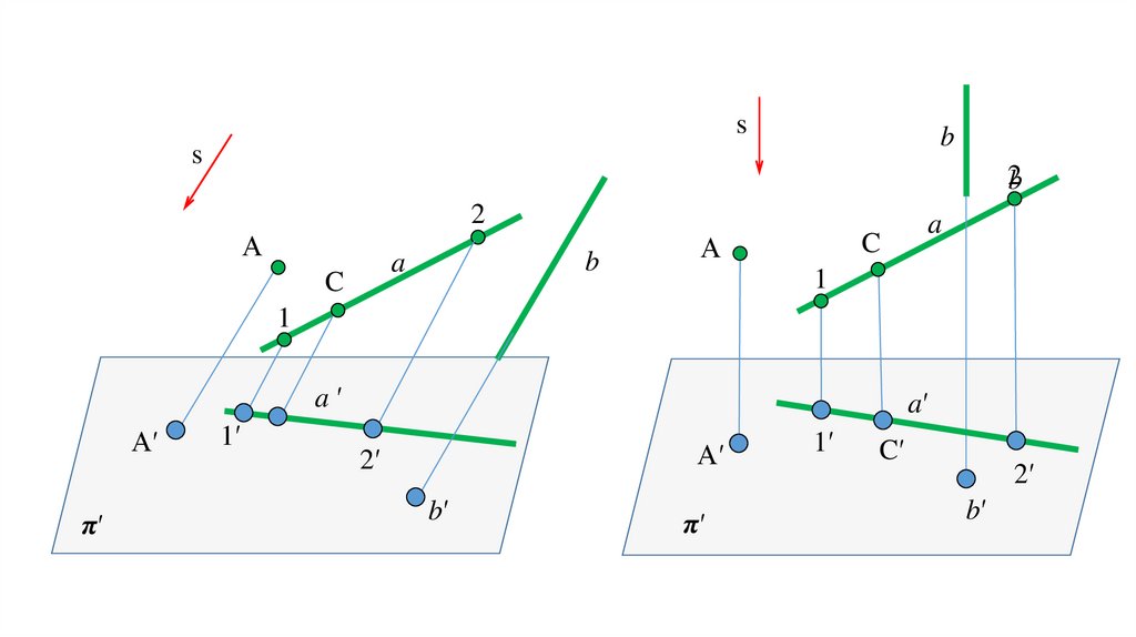 единому направлению s. В зависимости от угла, под которым проецирующий луч падает на плоскость проекций