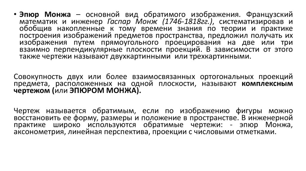 Зарождение начертательной геометрии связывается с именем Гаспара Монжа –