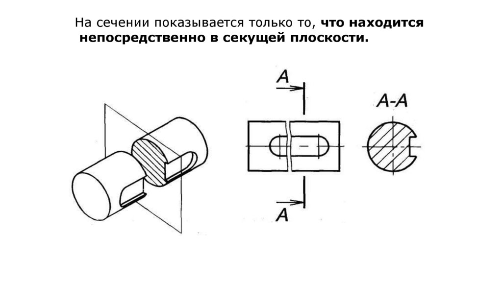 •а) часть предмета, находящуюся между наблюдателем и секущей плоскостью, изображать
