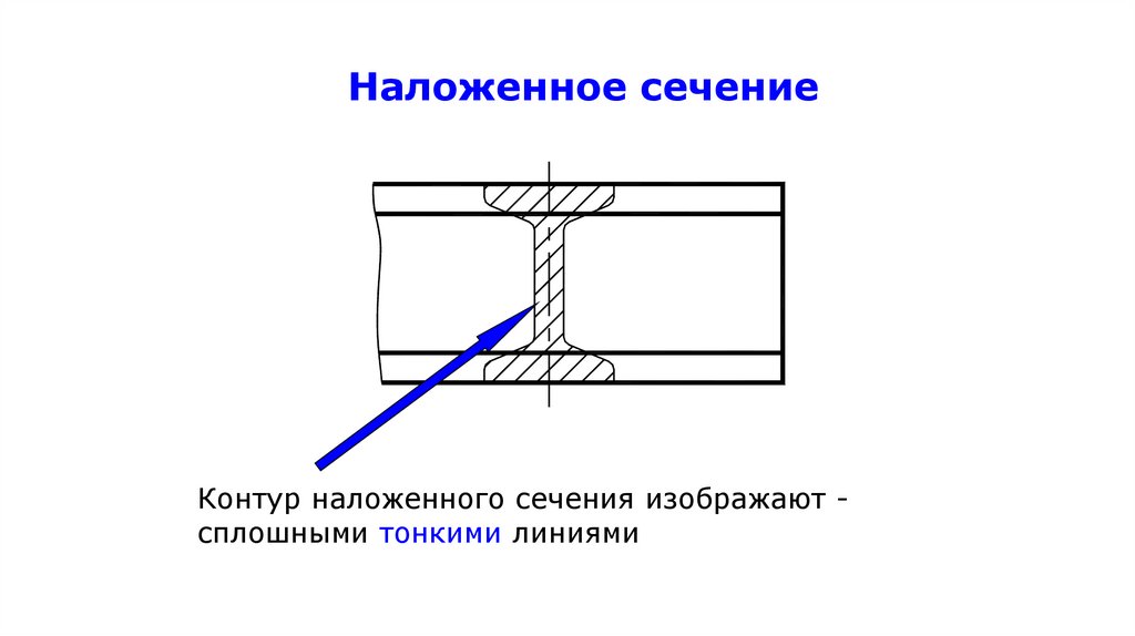 штрихпунктирной утолщенной линией непосредственно на разрезе (наложенная проекция);