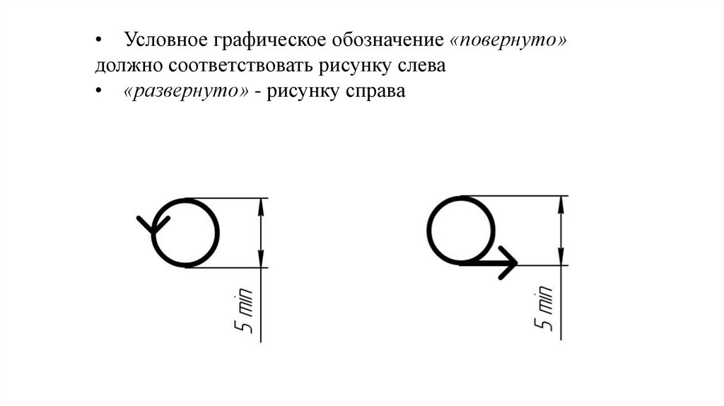 • Условное графическое обозначение «повернуто»должно соответствовать рисунку слева