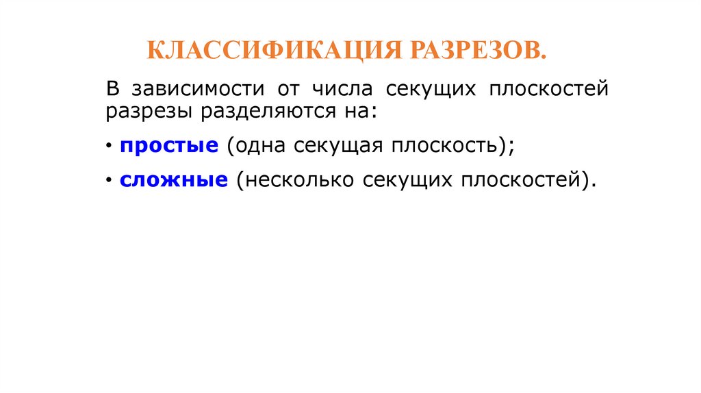 КЛАССИФИКАЦИЯ РАЗРЕЗОВ.В зависимости от числа секущих плоскостей