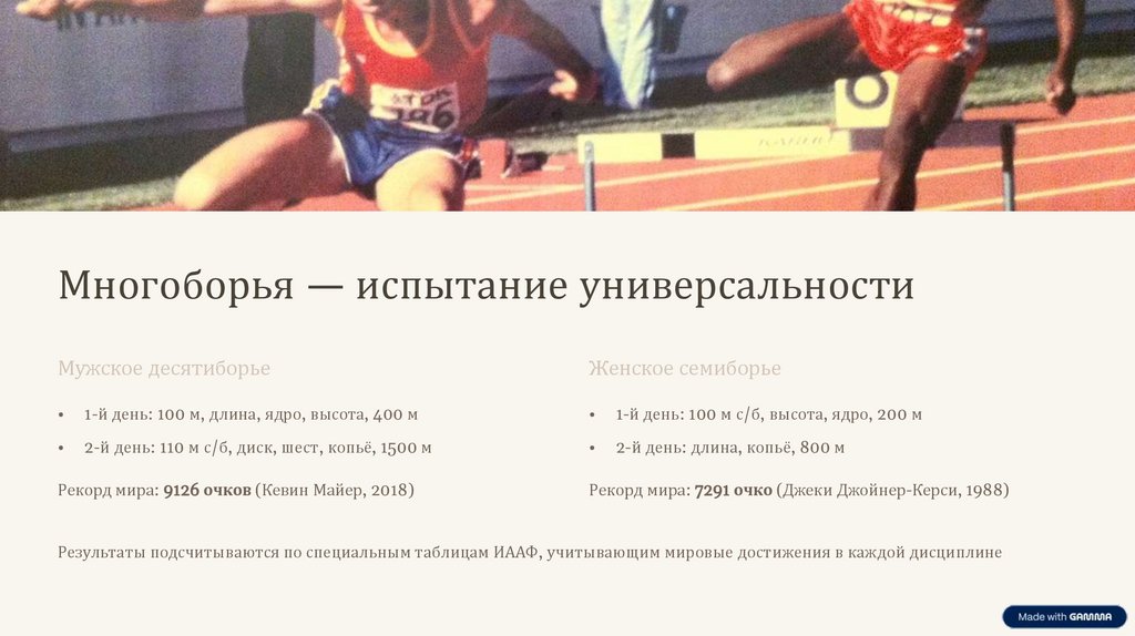 Результаты подсчитываются по специальным таблицам ИААФ, учитывающим мировые достижения в каждой дисциплине