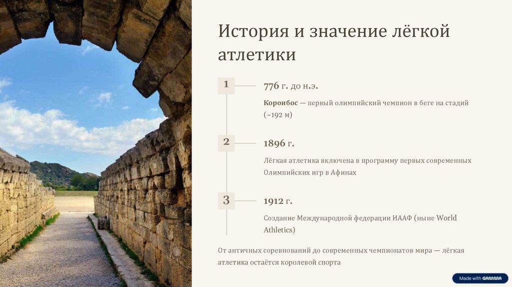 От античных соревнований до современных чемпионатов мира — лёгкая