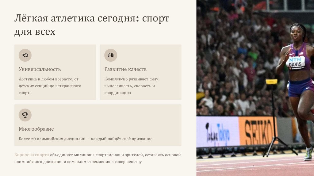 Королева спорта объединяет миллионы спортсменов и зрителей, оставаясь основой