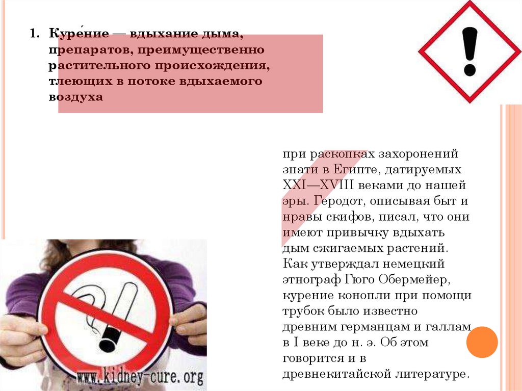 1. Куре́ние — вдыхание дыма,препаратов, преимущественно