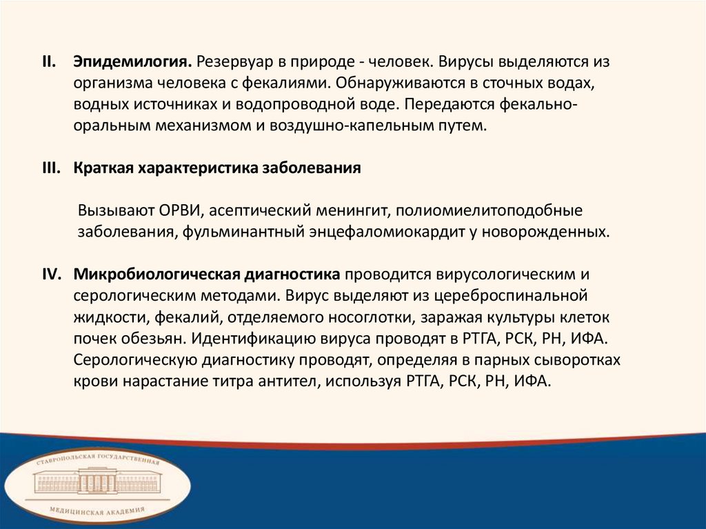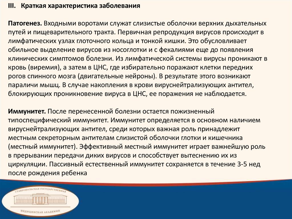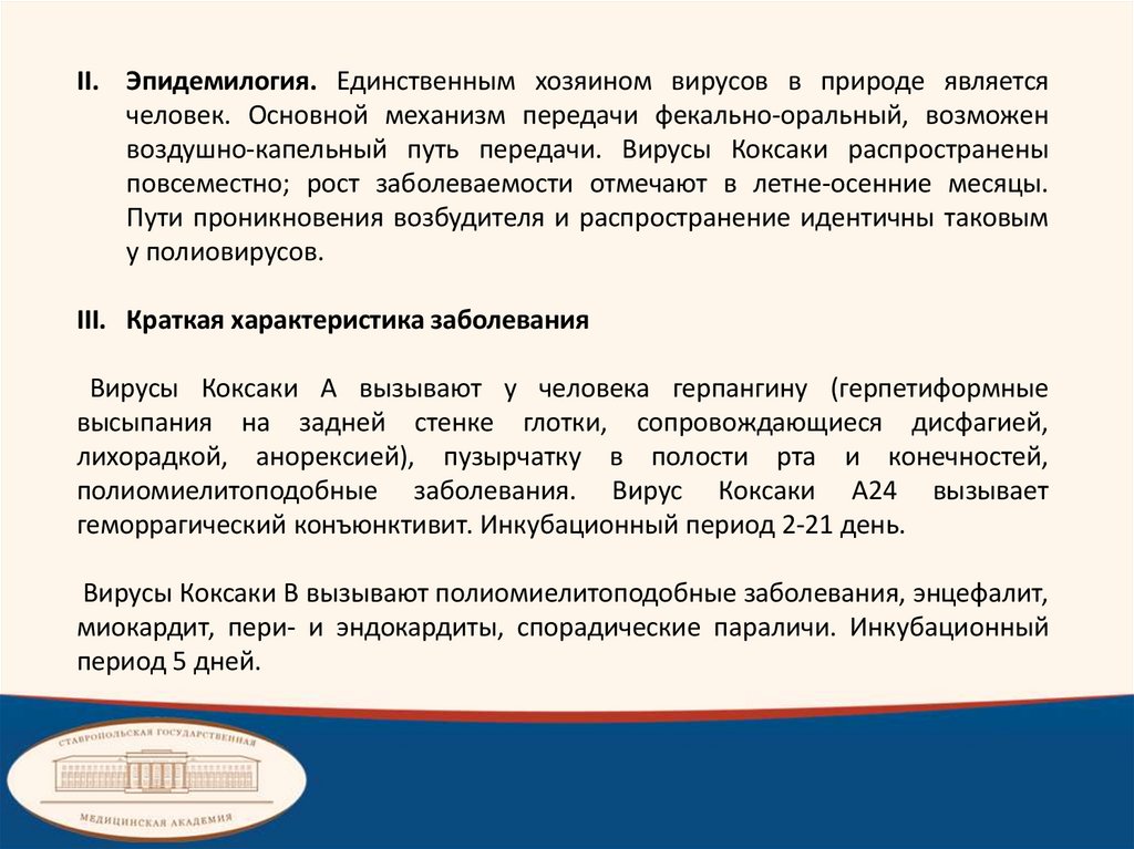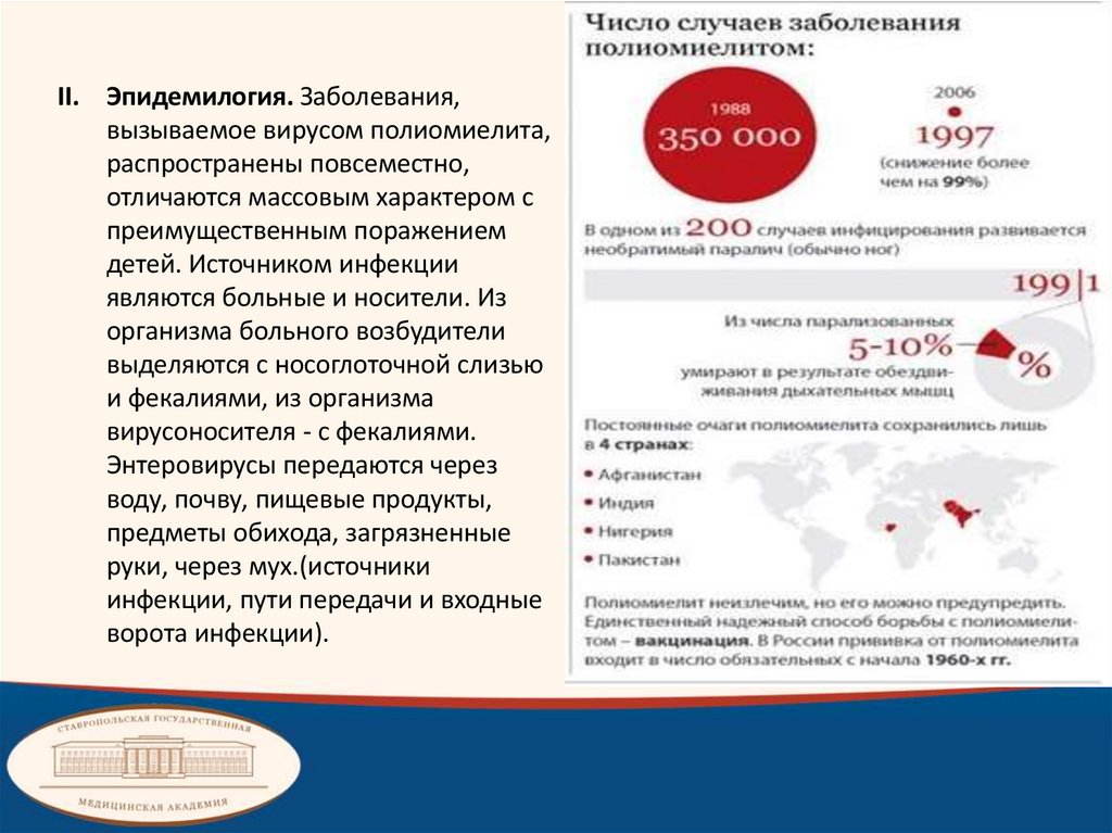 II. Эпидемилогия. Заболевания,вызываемое вирусом полиомиелита,