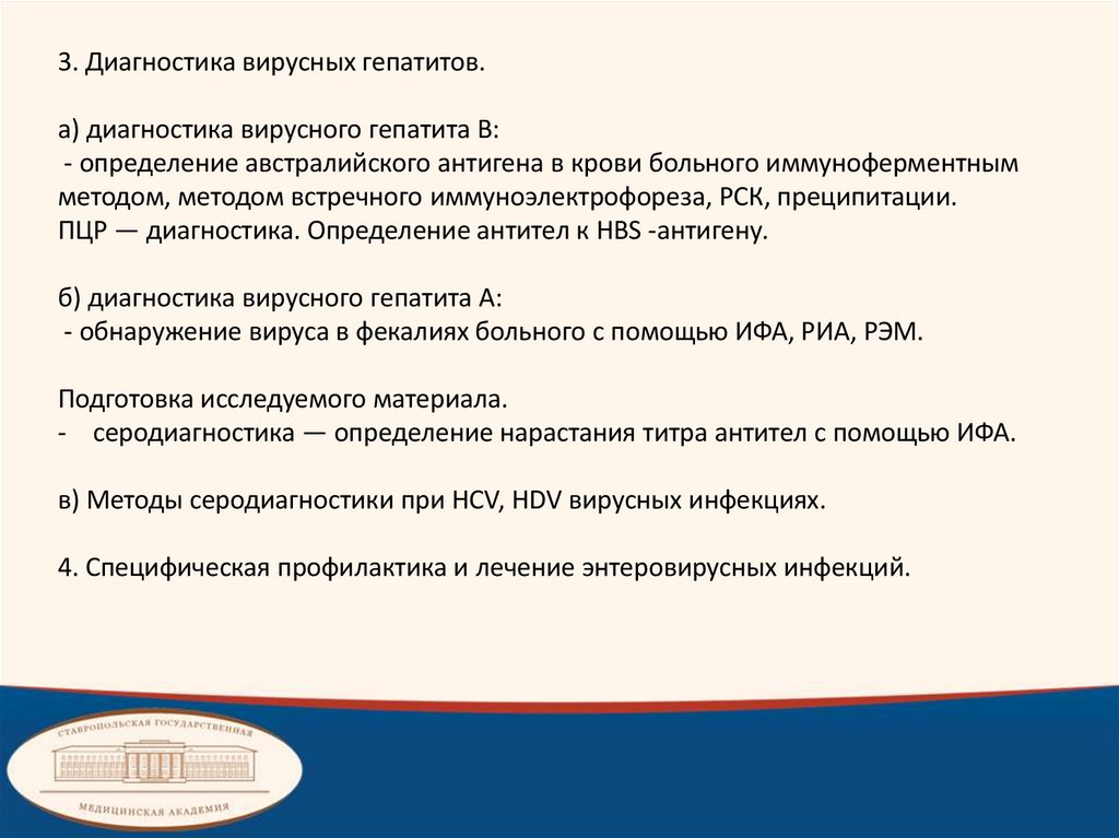 3. Диагностика вирусных гепатитов.а) диагностика вирусного гепатита В: