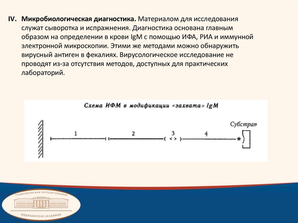 - обнаружение вируса в фекалиях больного с помощью ИФА, РИА, РЭМ.