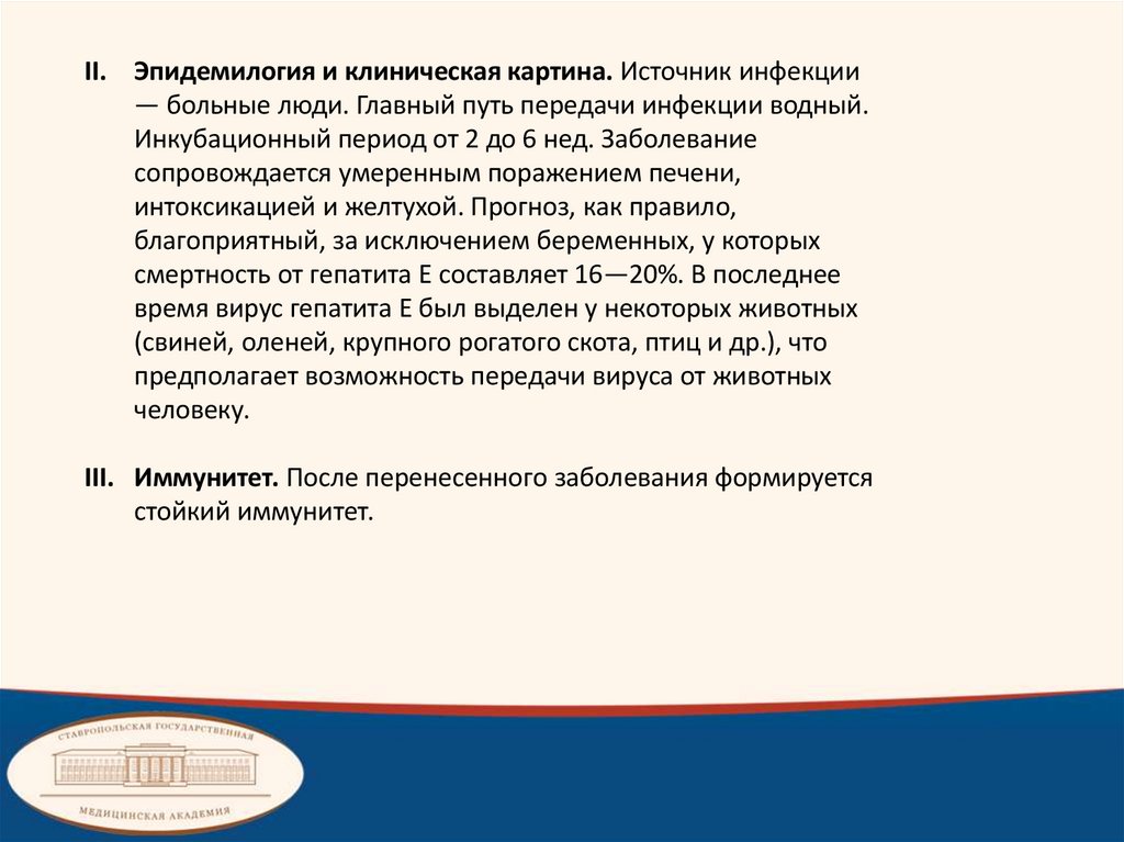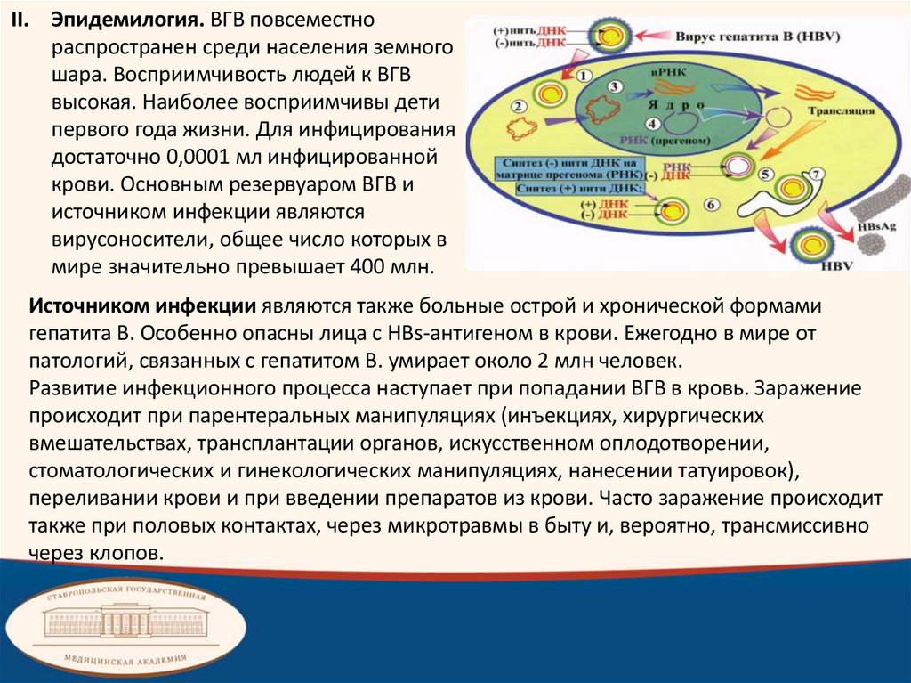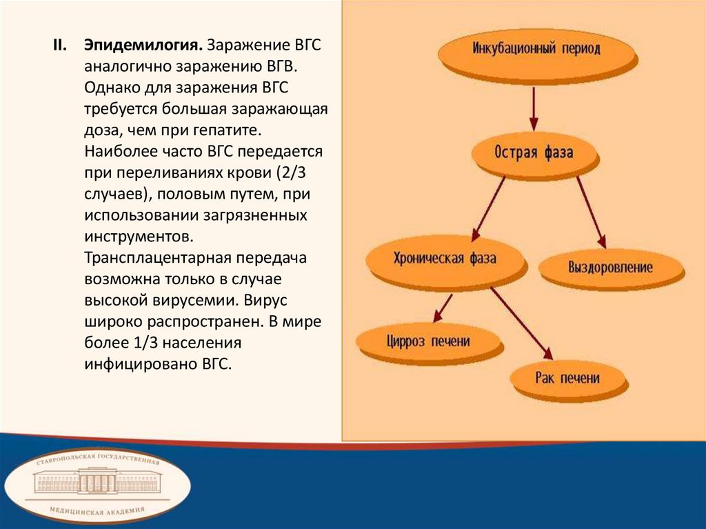 II. Эпидемилогия. Заражение ВГСаналогично заражению ВГВ.