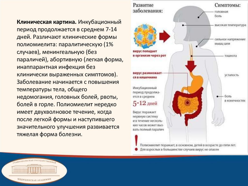 кровь (виремия), а затем в ЦНС, где избирательно поражают клетки передних