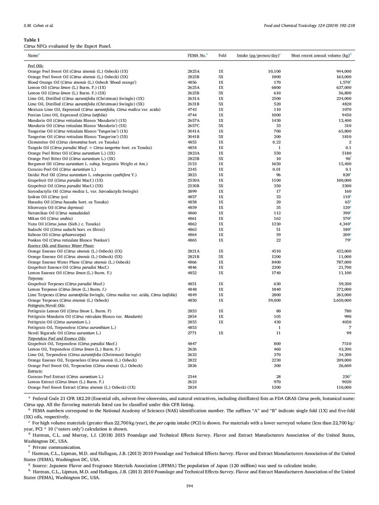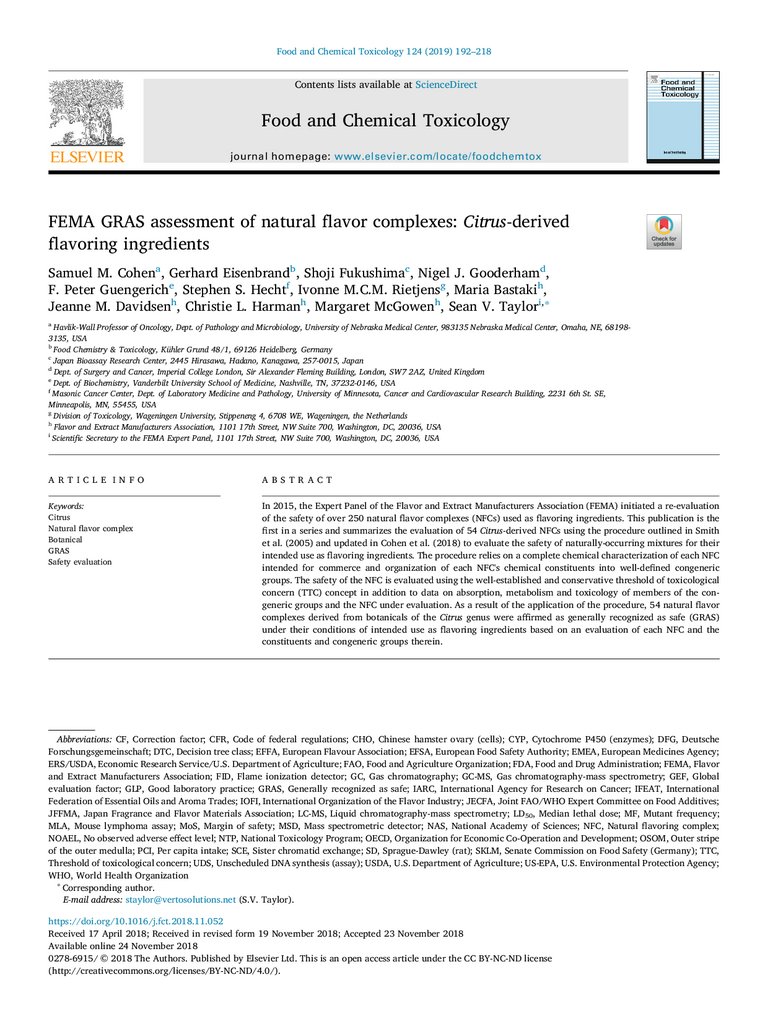 first in a series and summarizes the evaluation of 54 Citrus-derived NFCs using the procedure outlined in Smith