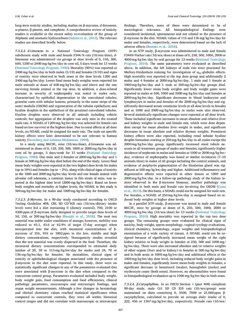 National Toxicology Program, 1990. Carcinogenicity and toxicology studies of d-limonene in F344/N rats and B6C3F1 mice (gavage studies). Natl. Toxicol. Progr. Tech.