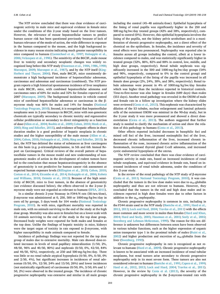 National Toxicology Program, 2010. NTP technical report on the toxicology and carcinogenesis studies of beta-myrcene (CAS No. 123-35-3) in F344/N rats and B6C3F1