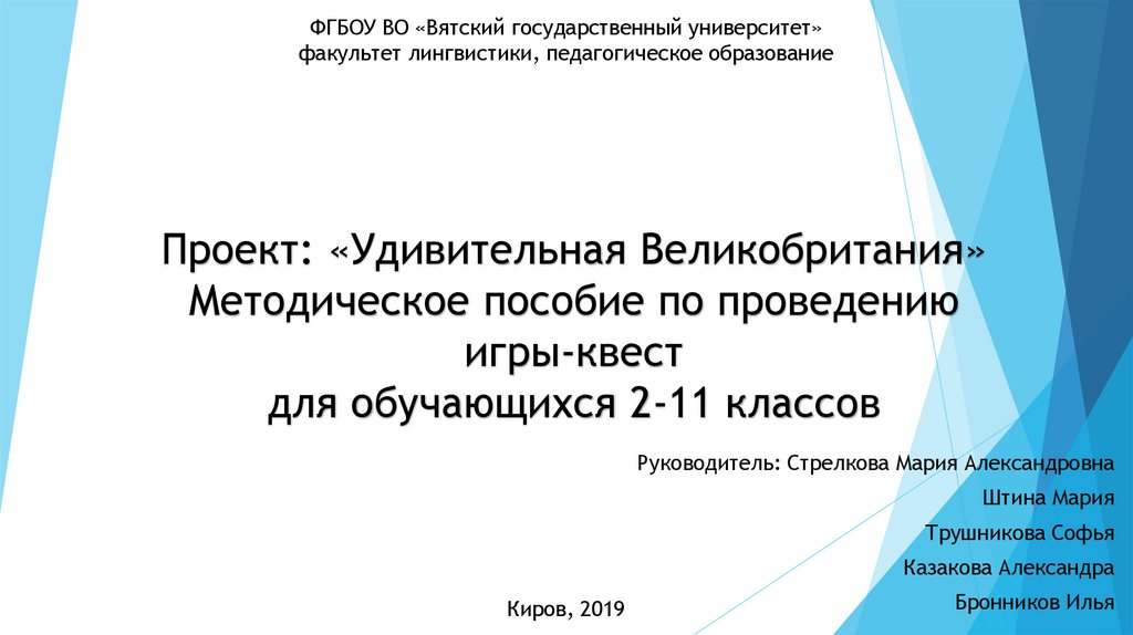 1. Проект: «Удивительная Великобритания» Методическое пособие по проведению игры-квест для обучающихся 2-11 классов