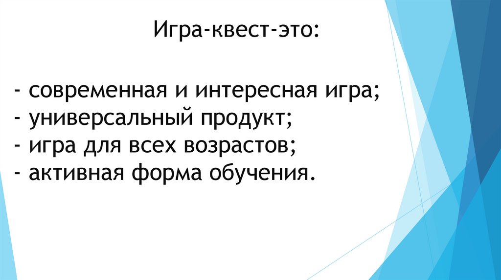 Игра-квест-это:- современная и интересная игра;