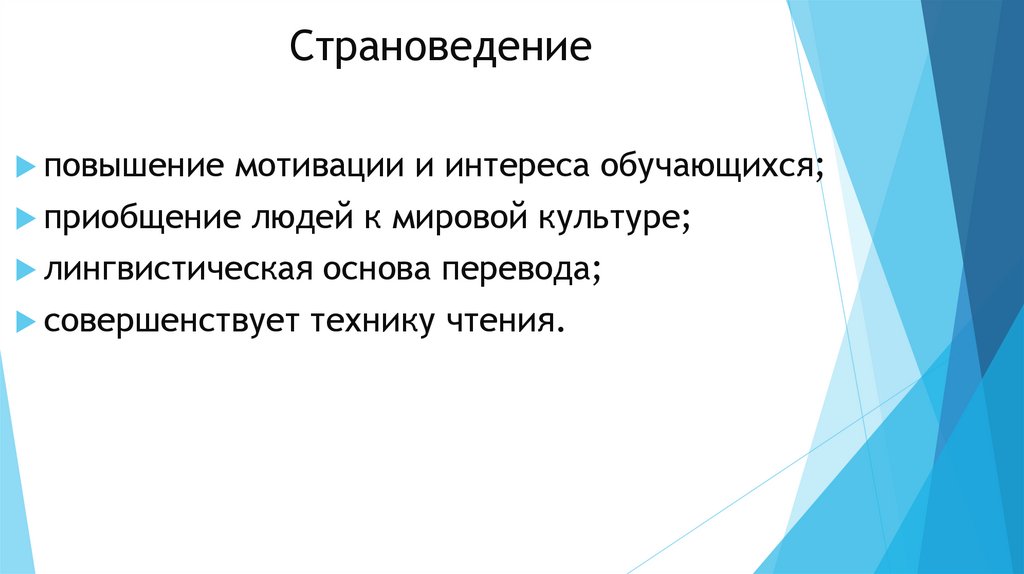 Страноведениеповышение мотивации и интереса обучающихся;