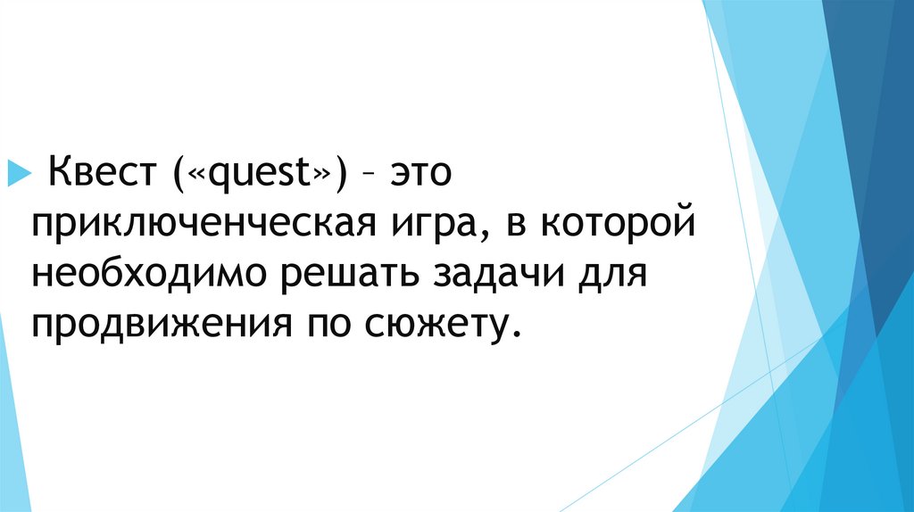 Квест («quest») – этоприключенческая игра, в которой