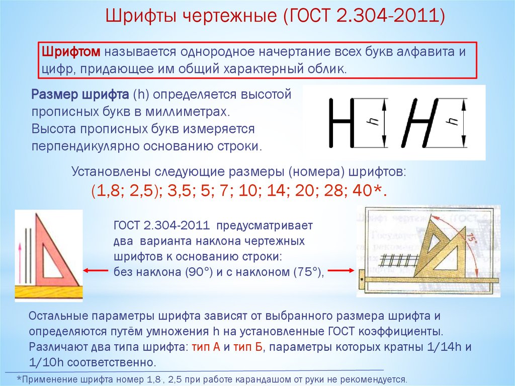 Шрифты чертежные (ГОСТ 2.304-2011)Шрифтом называется однородное начертание всех букв алфавита и