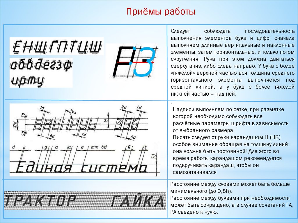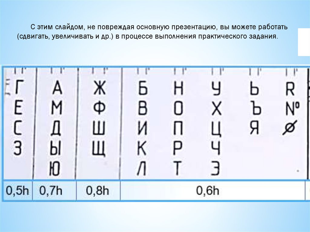 4. Какие размеры букв по высоте используются для выполнения надписей:
