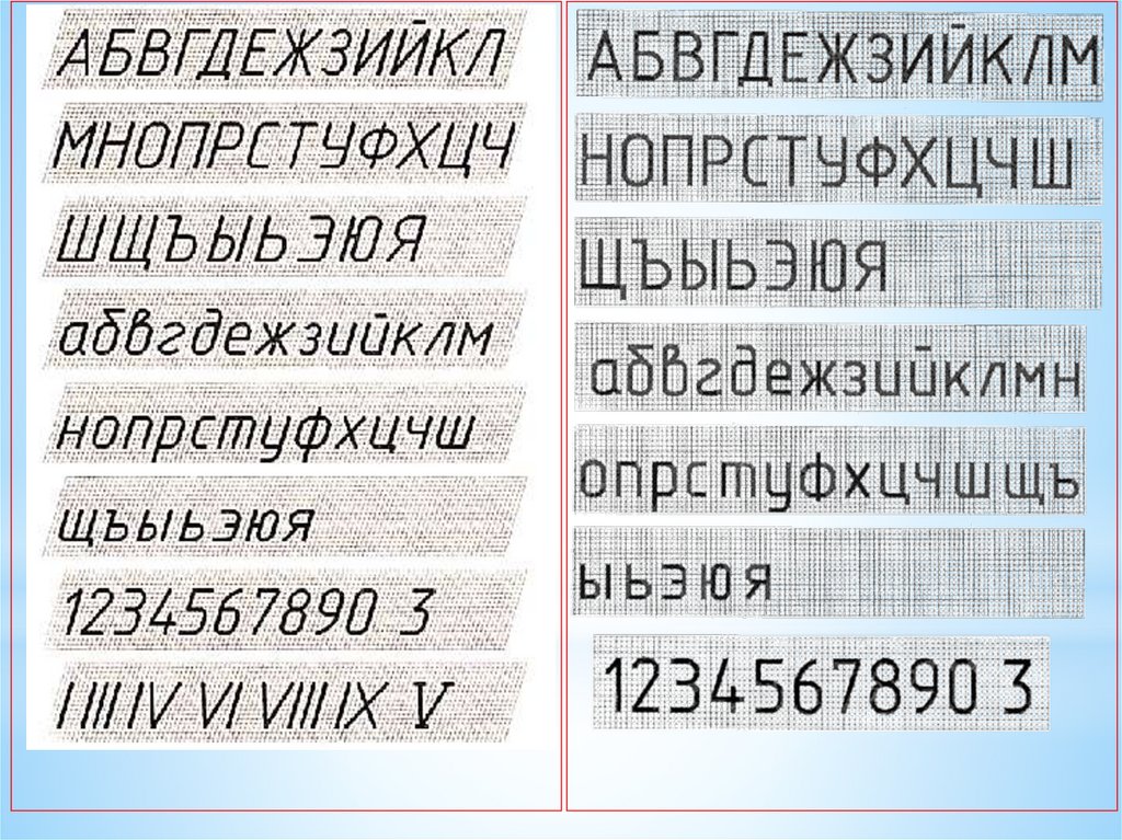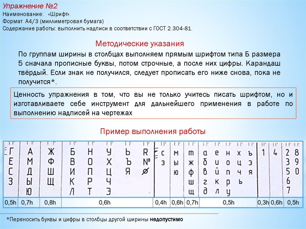 *Применение шрифта номер 1,8., 2,5 при работе карандашом от руки не рекомендуется.
