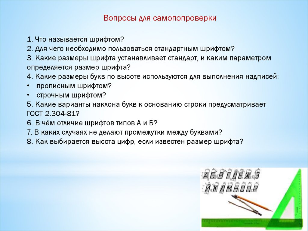 Вопросы для самопопроверки1. Что называется шрифтом?