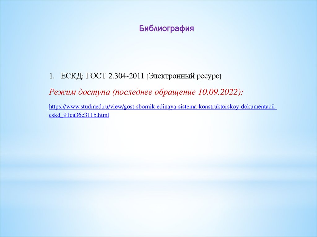 Библиография1. ЕСКД: ГОСТ 2.304-2011 [Электронный ресурс]