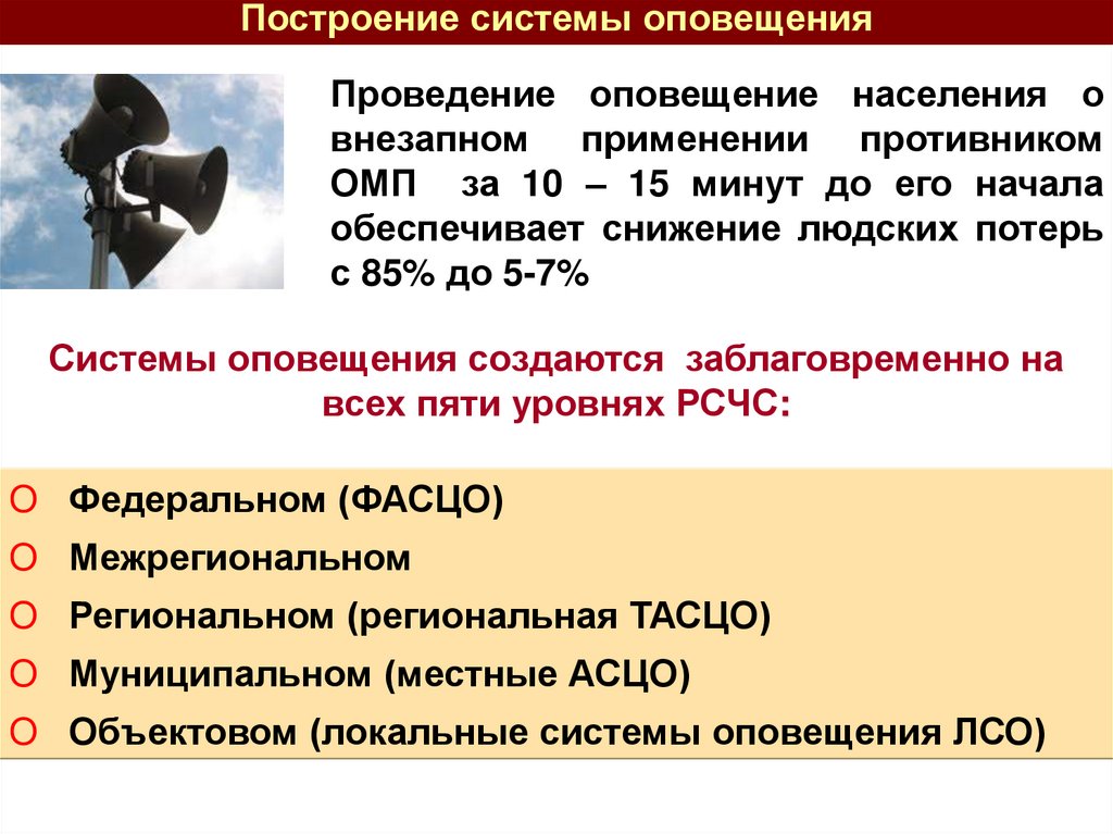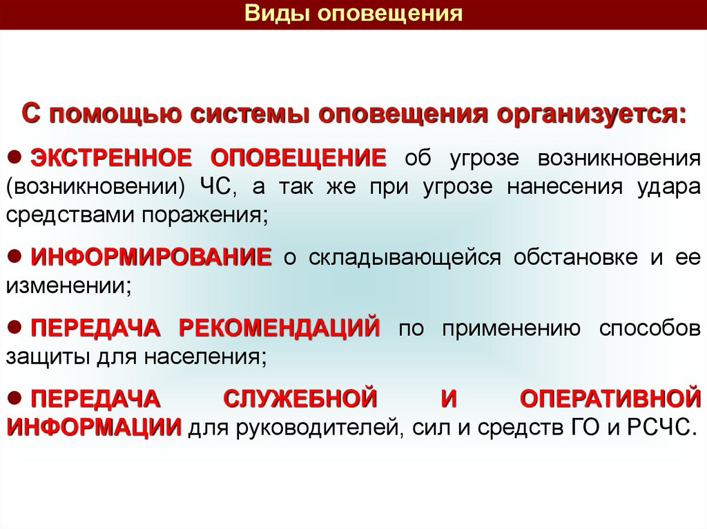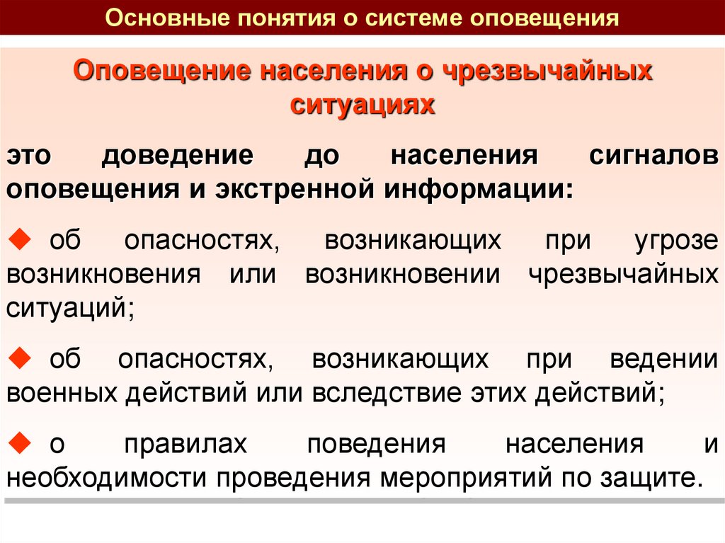Основные понятия о системе оповещенияОповещение населения о чрезвычайных